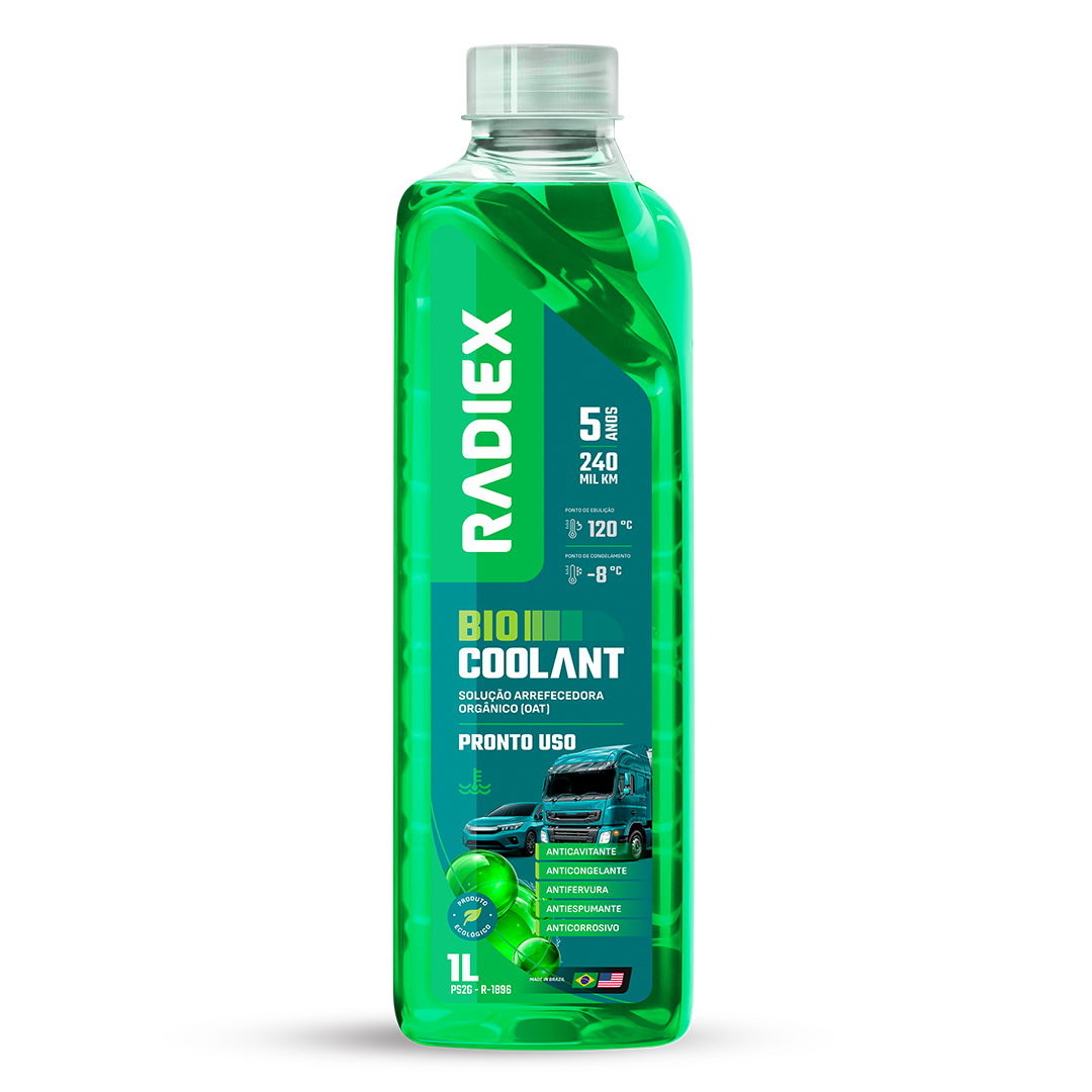 O Bio Coolant Pronto Uso foi formulado com uma base 100% orgânica, proporcionando produto de longa duração. Composto por uma solução de sais orgânicos perfeitamente balanceado de forma a proporcionar proteção duradoura aos componentes metálicos do sistema de arrefecimento de motores da linha leve, pesada e estacionários. Sua fórmula exclusiva, biodegradável, inibe o ressecamento das mangueiras, além de corrosão e cavitação, prolongando a vida útil do motor. Além de ser muito mais prático para quem utiliza. O produto ainda é livre de borato, nitrito, nitrato, aminas, fosfato e silicato.